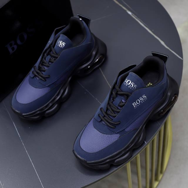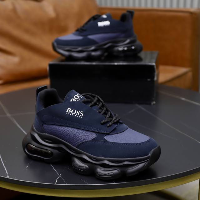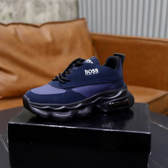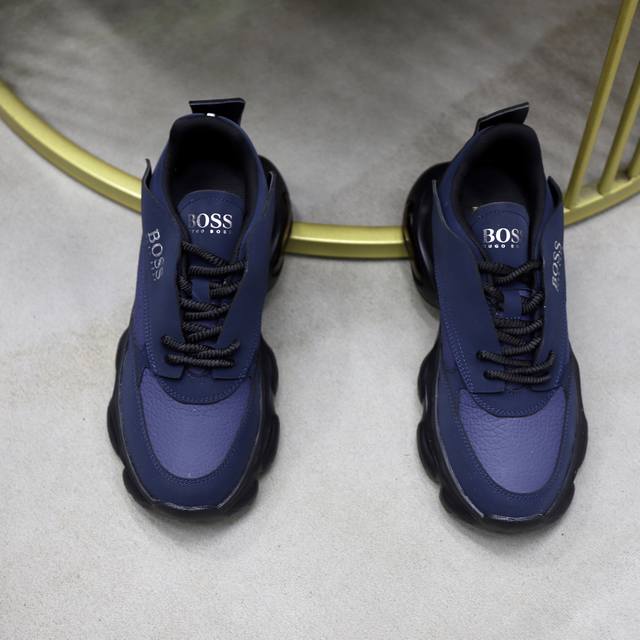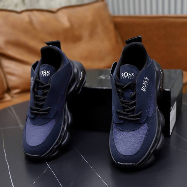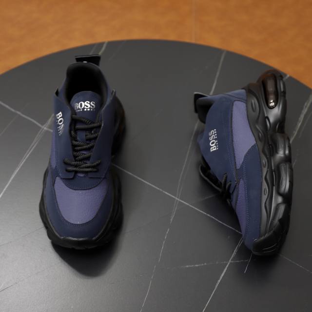 / 出厂价pp: 品牌:Boss 标准码:38-44 45订做 等级:官网同款 材料:原厂牛皮拼接面料 舒适透气内里 轻便柔软耐磨大底 款式类别:男士时尚休闲鞋 跑