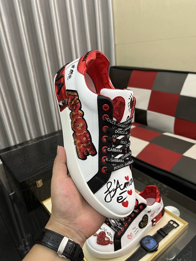 / 出厂价pp: Dg最新爆款休闲鞋,鞋舌带有品牌标志性细节,丝绸牛皮与牛反绒相结合提升格调。时尚百搭,可为各式造型增光添彩。塑造独具动感活力与摩登气息的精致设计,
