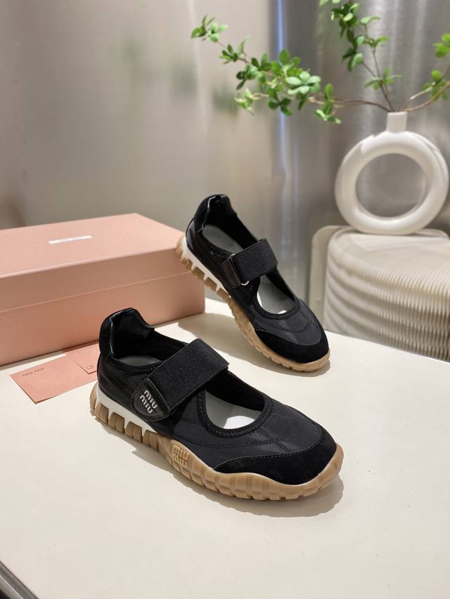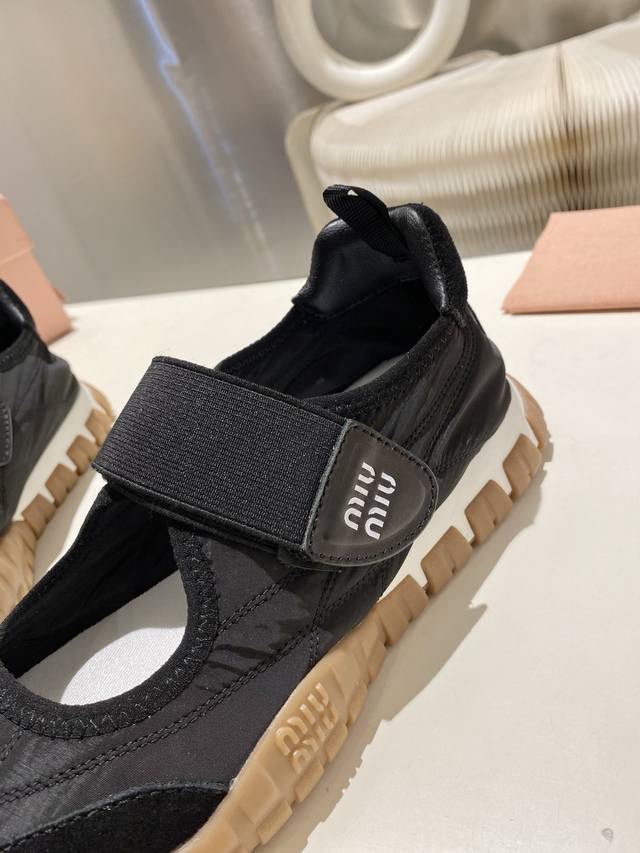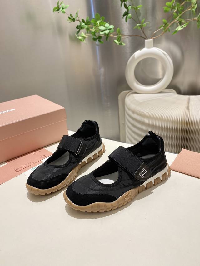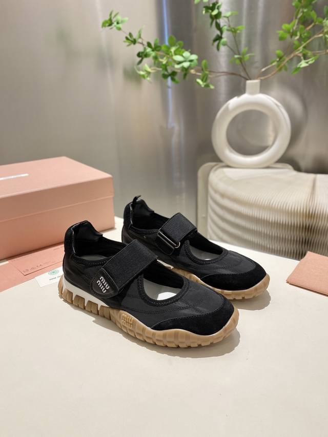 / 出厂 缪缪2025阿甘休闲鞋运动鞋 春夏新款 最近爆款前卫大胆的设计 .Miu风格融于此款厚底帆布运动鞋的简约线条 ,别致徽标饰于鞋舌与背后,点缀复古 厚底设计