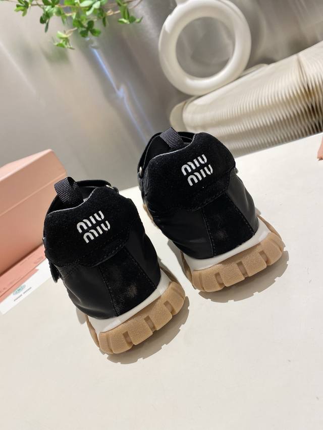 出厂 缪缪2025阿甘休闲鞋运动鞋 春夏新款 最近爆款前卫大胆的设计 .Miu风格融于此款厚底帆布运动鞋的简约线条 ,别致徽标饰于鞋舌与背后,点缀复古 厚底设计