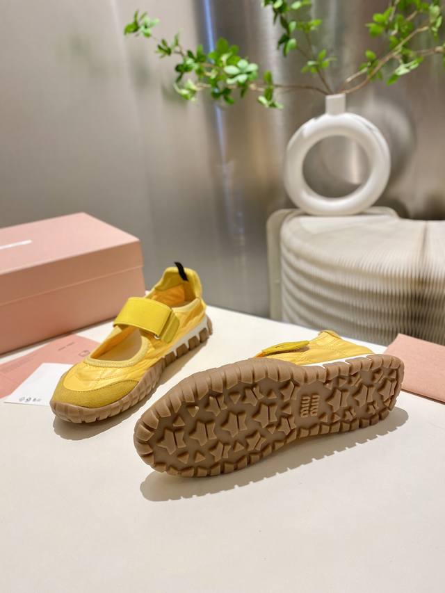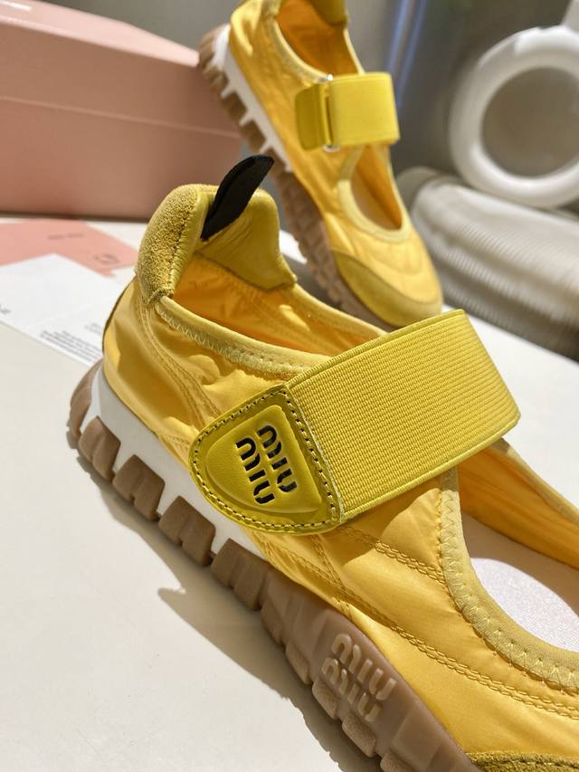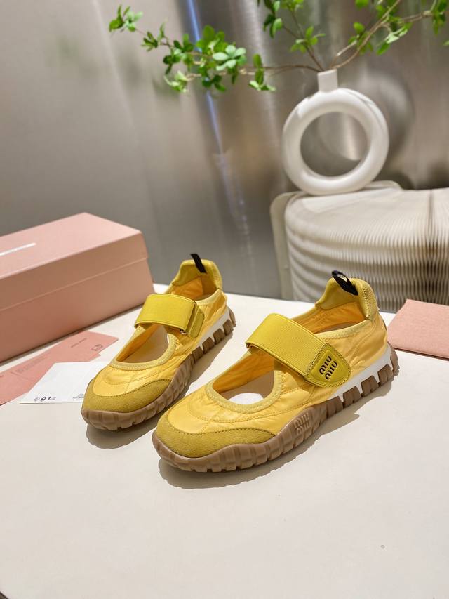 出厂 缪缪2025阿甘休闲鞋运动鞋 春夏新款 最近爆款前卫大胆的设计 .Miu风格融于此款厚底帆布运动鞋的简约线条 ,别致徽标饰于鞋舌与背后,点缀复古 厚底设计 大胆创新前卫 上脚舒适透气 颜色也很百搭码数35-41 40.41订做