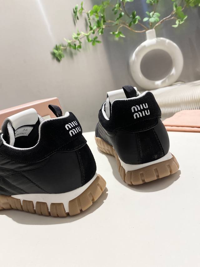 出厂 缪缪2025阿甘休闲鞋运动鞋 春夏新款 最近爆款前卫大胆的设计 .Miu风格融于此款厚底帆布运动鞋的简约线条 ,别致徽标饰于鞋舌与背后,点缀复古 厚底设计 大胆创新前卫 上脚舒适透气 颜色也很百搭码数34-41 34 41订做