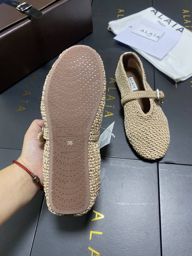 出厂 Alaia 走秀款平底芭蕾鞋平底单鞋! 甜酷芭蕾风,人气超高的一款芭蕾鞋,浪漫又迷人舒适百搭。 原版订制针织面料, 羊皮内里,私模橡胶防滑大底, 码数:3