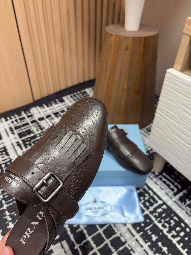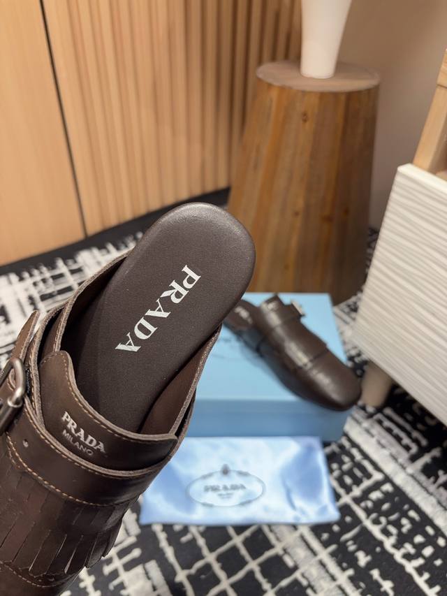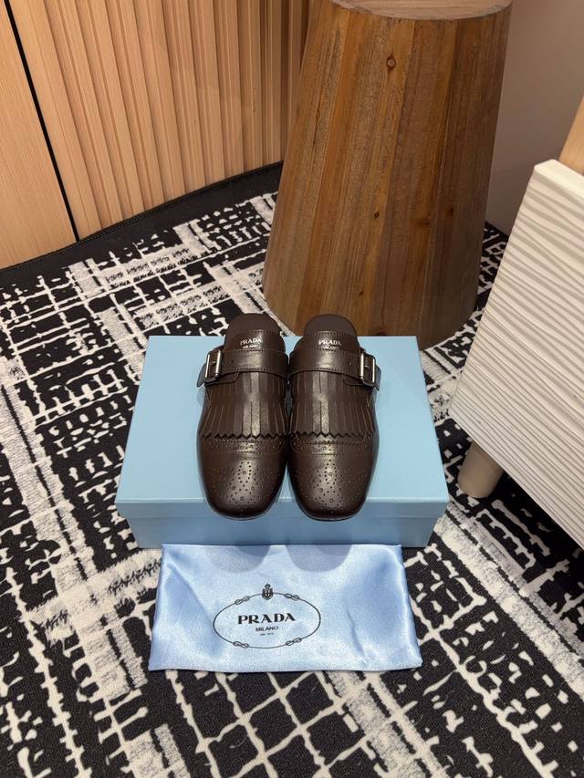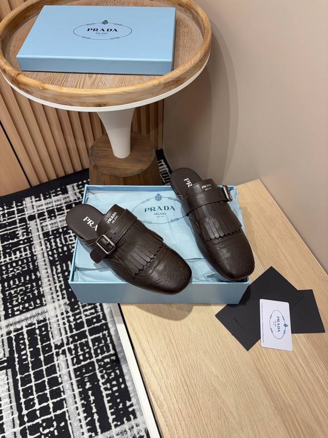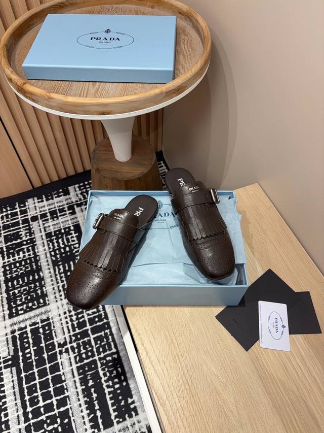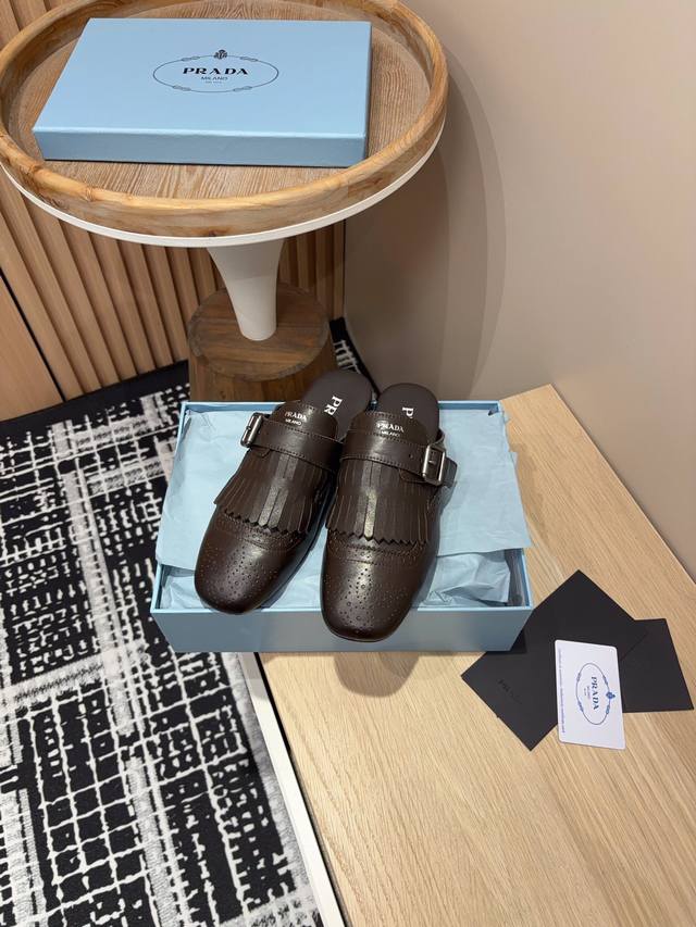 25Ss春夏新款prada流苏复古乐福鞋 半拖鞋