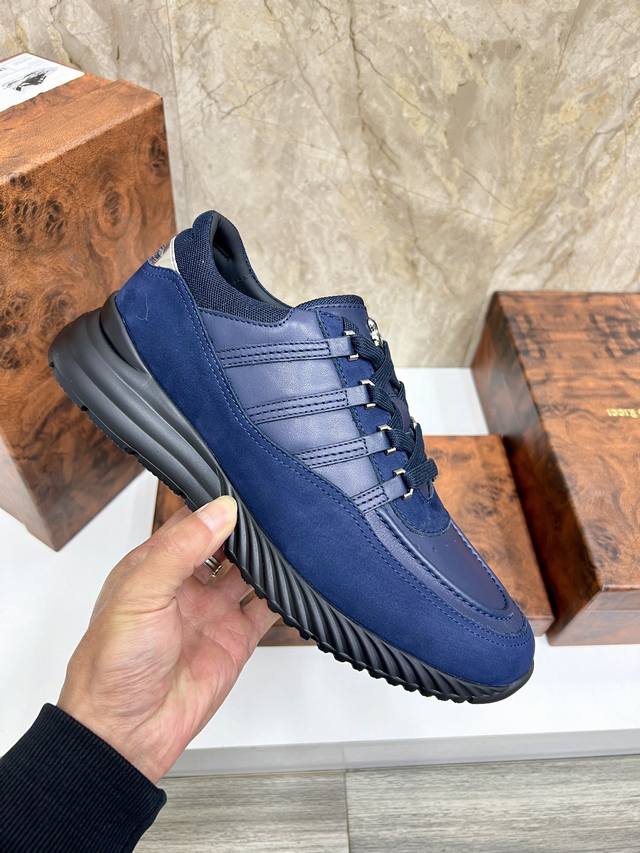莞产 #布里奥尼系带男鞋运动鞋Crossing 运动鞋以麂皮绒皮革和尼龙材质,热压拼接撞色设计。后跟部位内衬凸出,包脚感十足。饰以拼色撞搭侧面饰带。动感十足且时