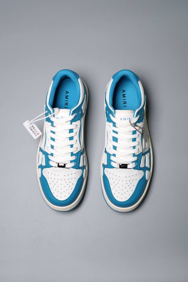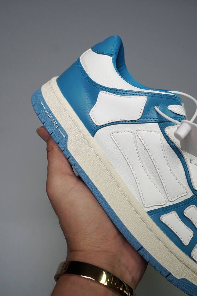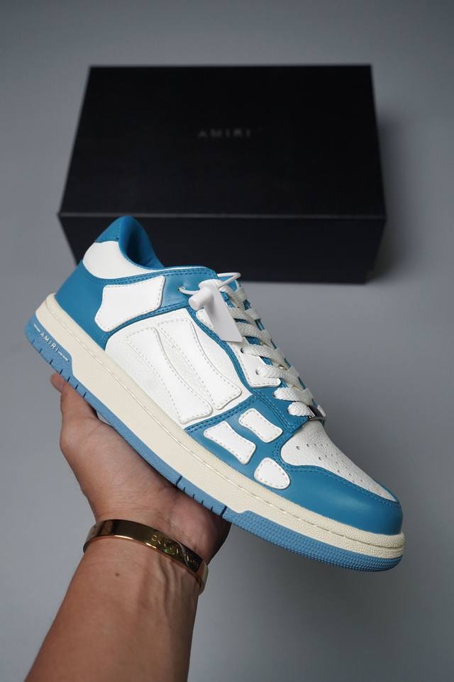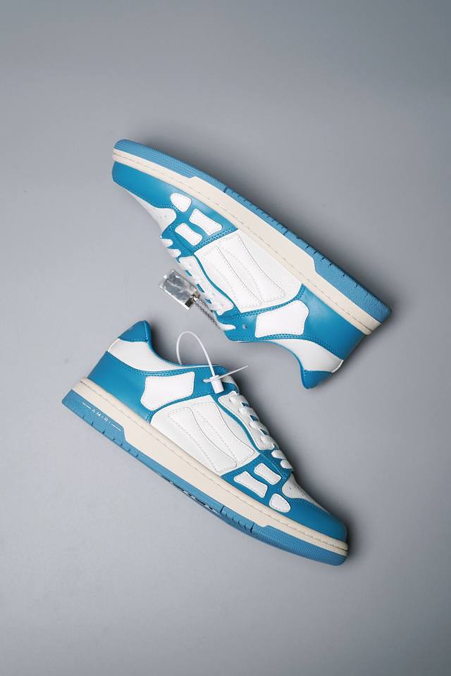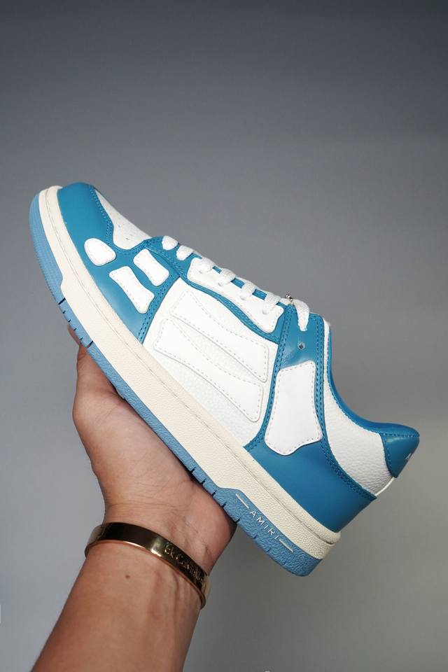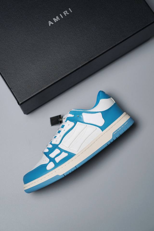 Amiri 埃米尔 Skeleton Low-Skel top Sneakers 骨骼系列情侣鞋 当潮顶流产品 众星上脚 低帮运动休闲板鞋 正确骨头形状 鞋舌外翻细节 头层牛皮双层加厚鞋面 鞋帮侧面骨头采用两张牛皮贴合处理 立体感更好 皮料切口均油边处理 定制金属LOGO铭牌及吊牌 并配有官方购物袋尽显高端大气 尺码 35 36 37 38 39 40 41 42 43 44 45