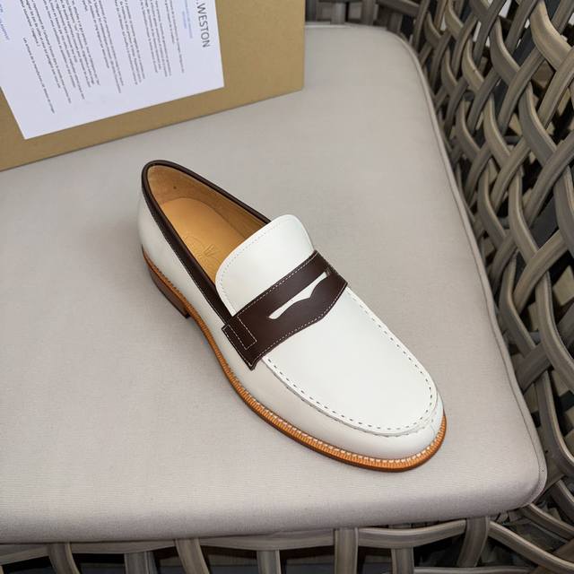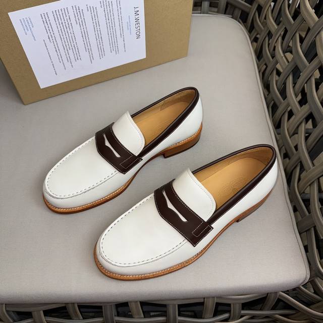 / 品牌:Jm威士顿 Jmweston德比商务男鞋 面料:采用进口牛皮 如天鹅绒一般柔软的皮革 内里:透气牛皮内里 同色系缝线细节 大底:意大利进口牛皮大底 Siz