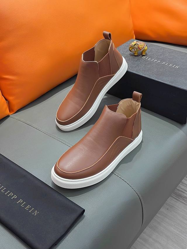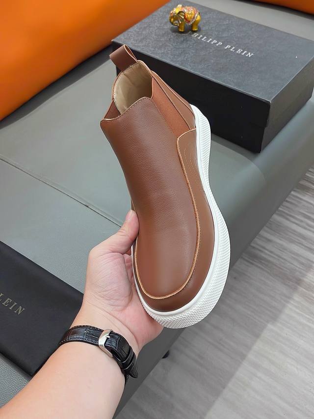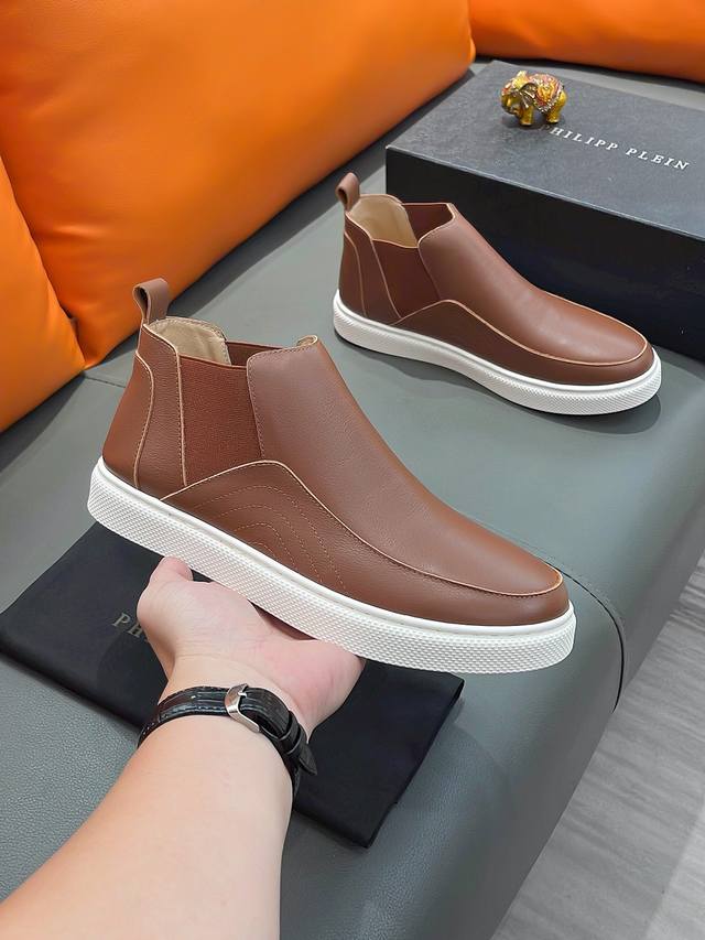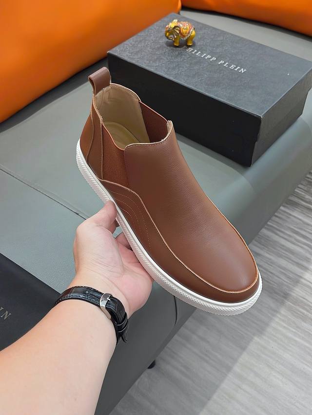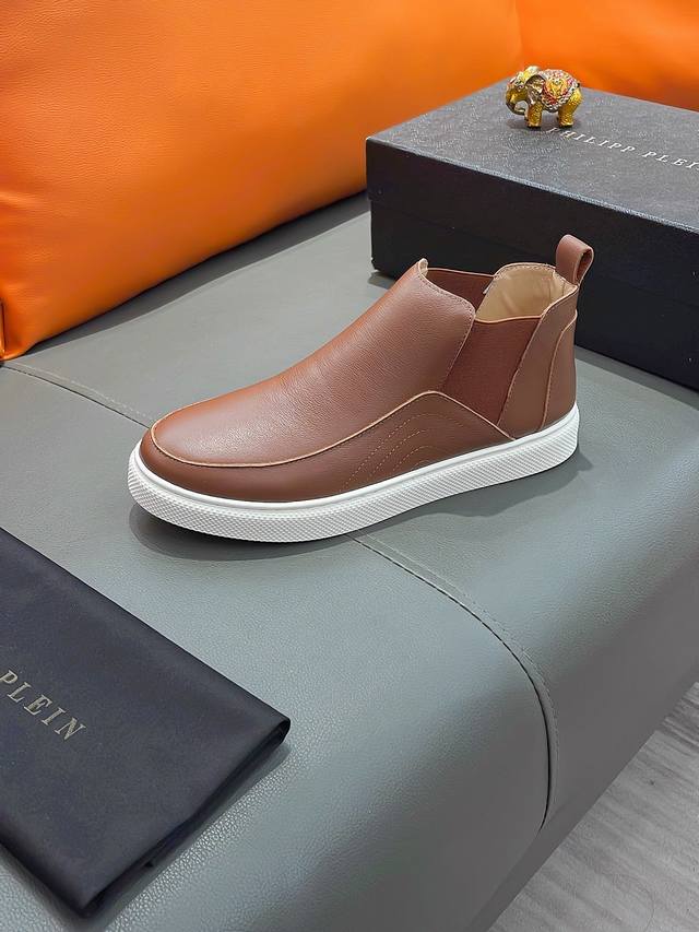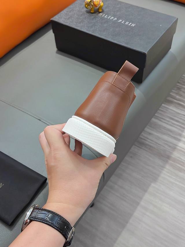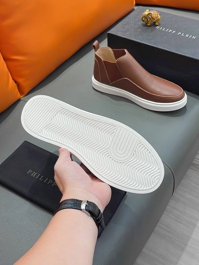 商品名称:P P 菲利普 普莱因 正规码数: 38-44 高帮鞋 商品材料:精选 牛皮鞋面,进口羊皮内里;原厂大底。