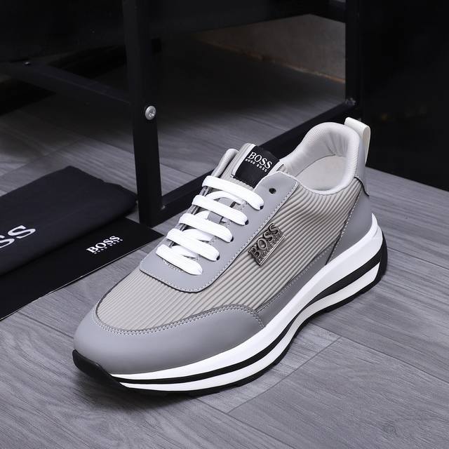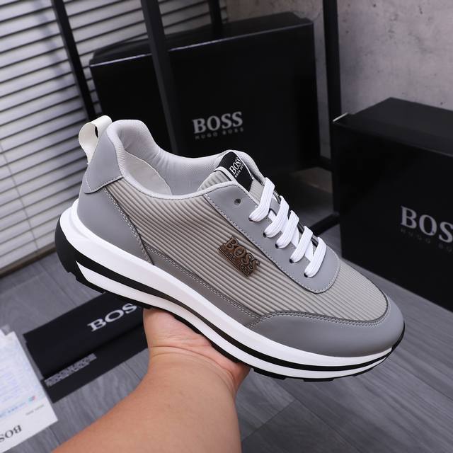 商品商标: BOSS 休闲鞋 正码码数: 38-44 商品材料:精选牛皮拼接透气鞋面 牛皮鞋垫 透气网内里 橡胶大底