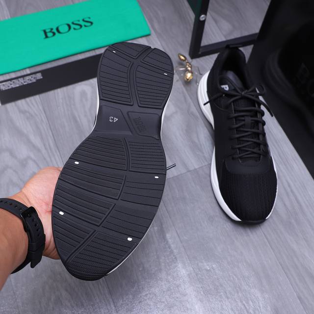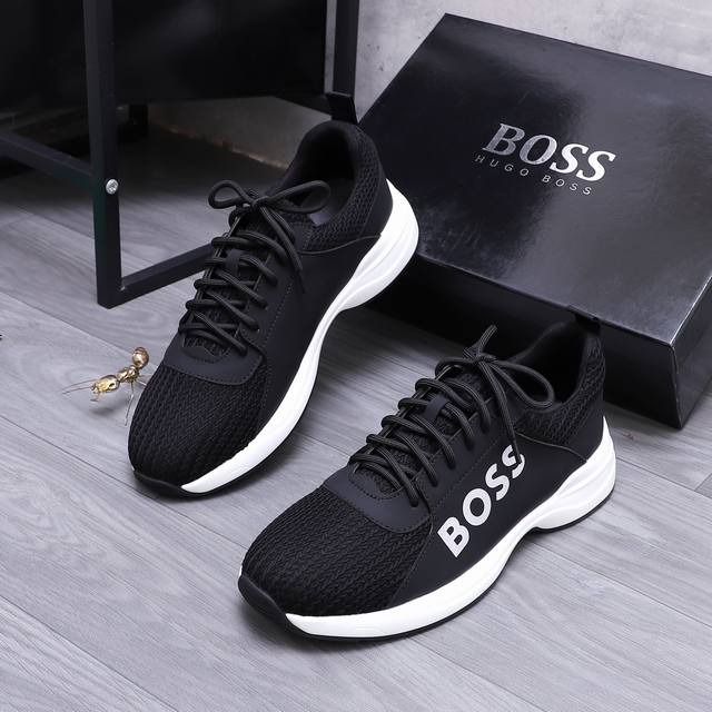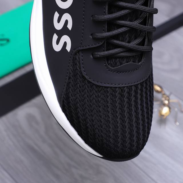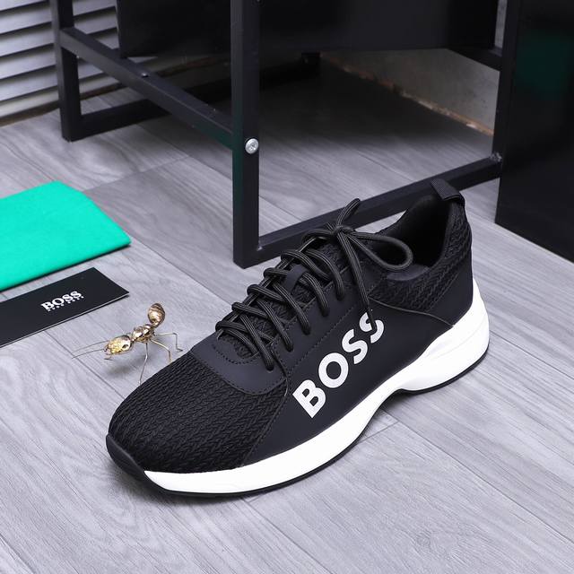 商品商标: BOSS 休闲鞋 正码码数: 38-45 商品材料:精选牛皮拼接透气织带鞋面 透气网内里 橡胶大底
