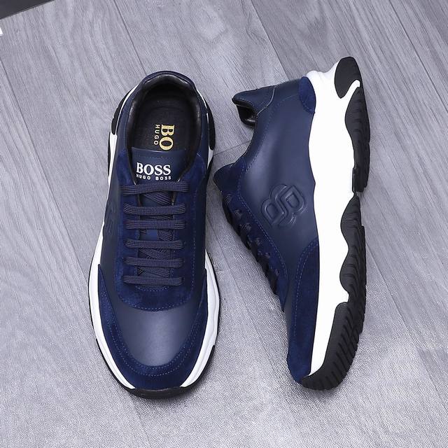 工厂价: Boss 最新休闲男鞋,欢迎1:1对比,爆单款boss香港专柜休闲鞋,专柜品质,支持验货,优质做工,鞋面采用意大利进口胎牛皮 透气羊皮内里,原版时尚运