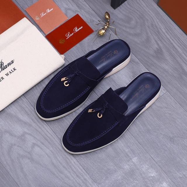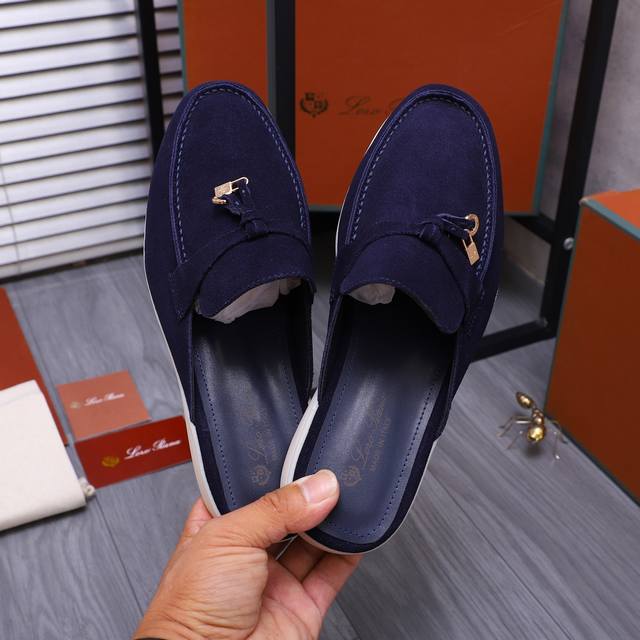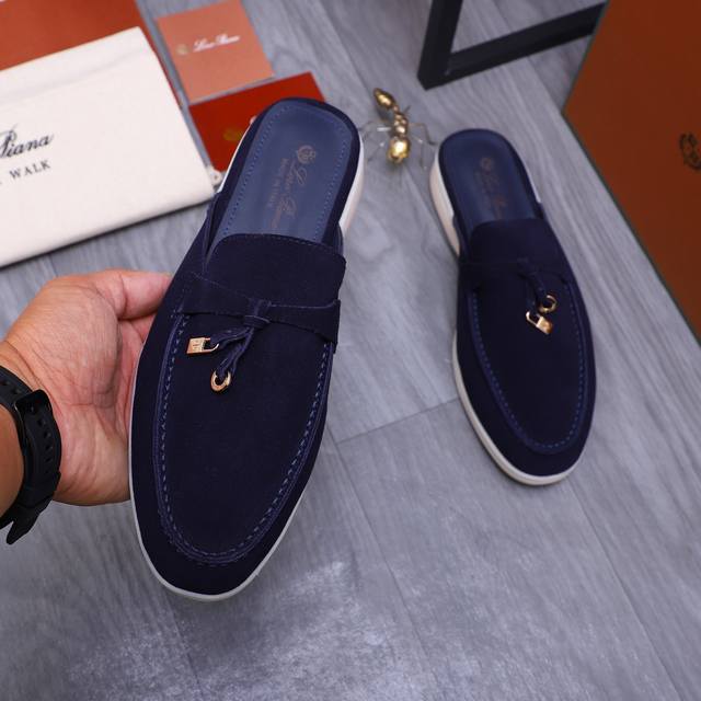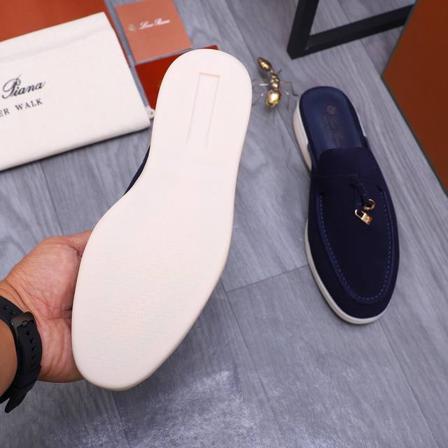 商品商标: Loro Piana 诺悠翩然 休闲半拖 情侣款 拖鞋 正码码数: 34-45 34.45订做不退换 商品材料:精选全磨砂牛皮鞋面 皮内里 原版大底
