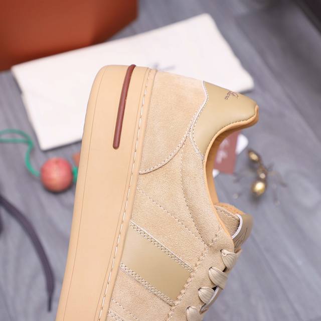 商品商标: Loro piana 诺悠翩然 休闲板鞋 正码码数: 38-46 45.46定做不退换 商品材料:精选磨砂牛皮鞋面 牛皮内里 原版大底