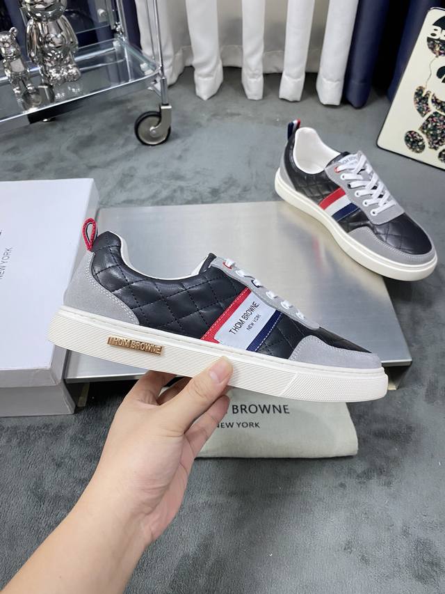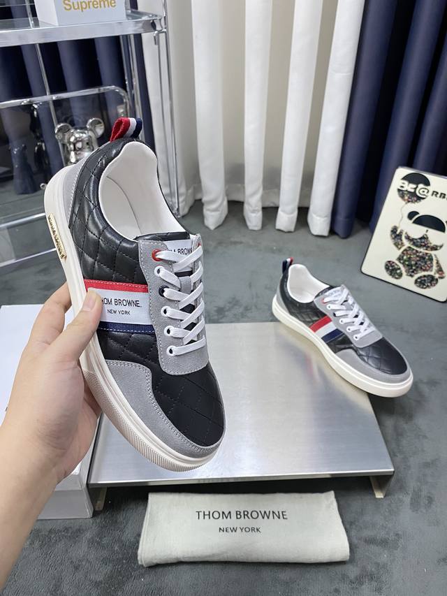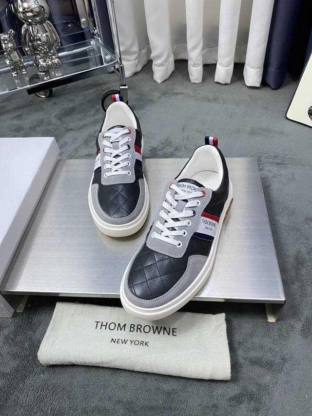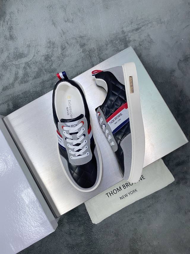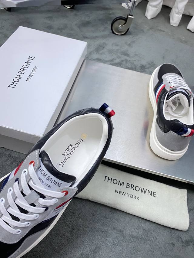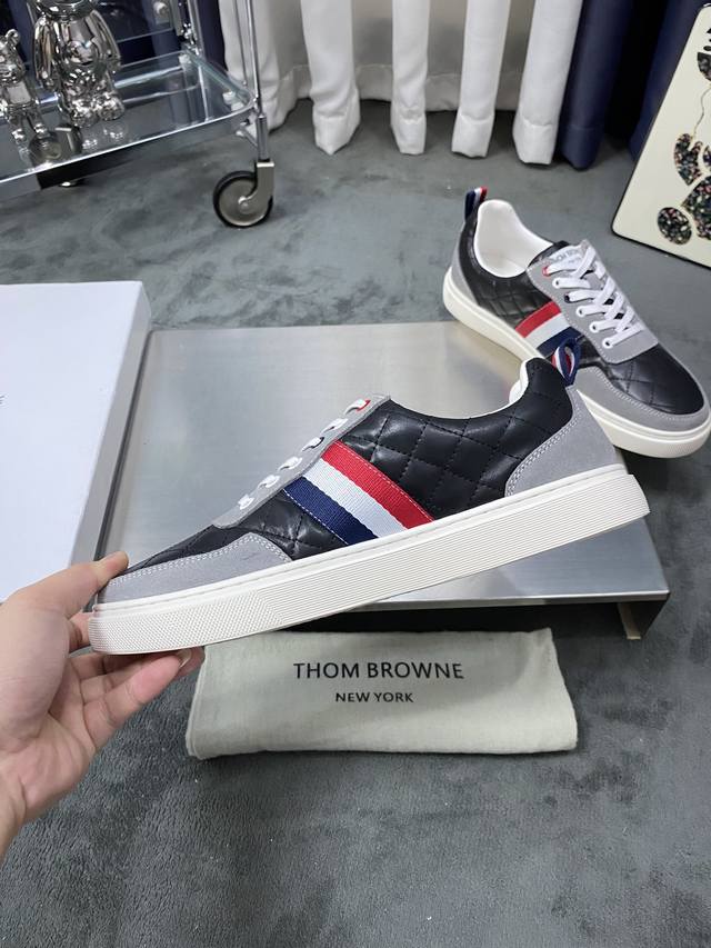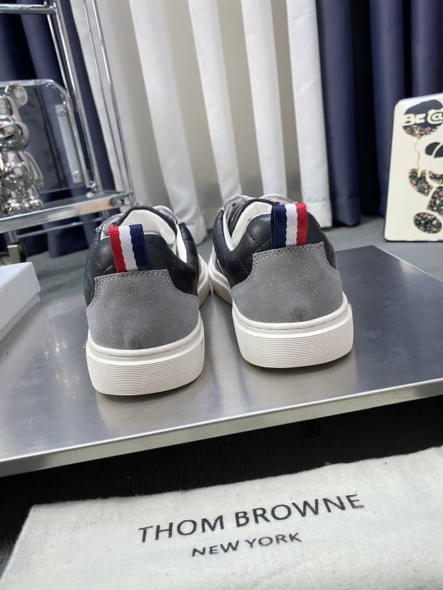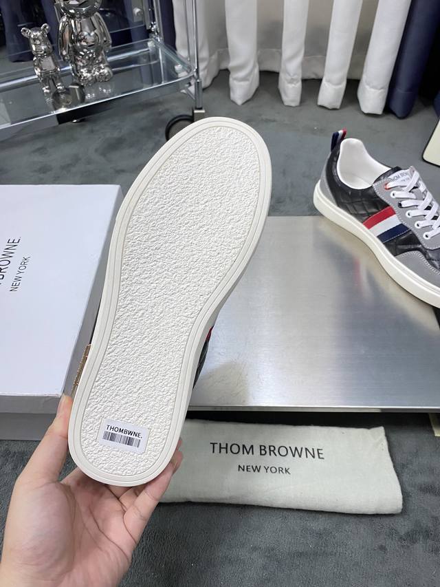 / 商品商标: Thom Browne 汤姆.布朗 正码码数: 38-45 商品材料: 新款tb白鞋风暴,鞋面采用原版进口牛皮,羊皮内里 鞋底采用原版鞋底制作 织带
