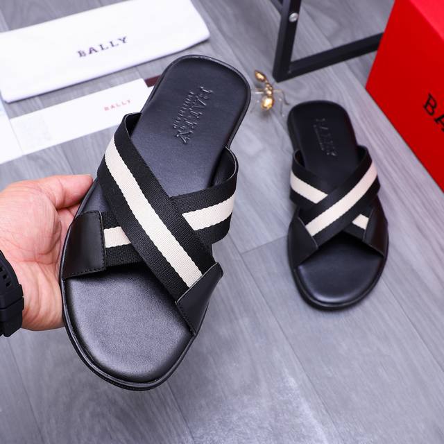 商品商标:BALLY 巴莉 交叉拖鞋正码码数: 38-45商品材料:鞋面牛皮配织带材料原版大底