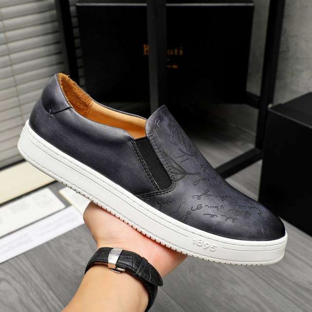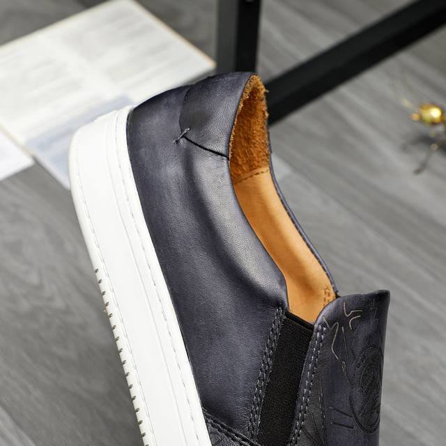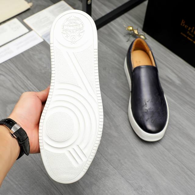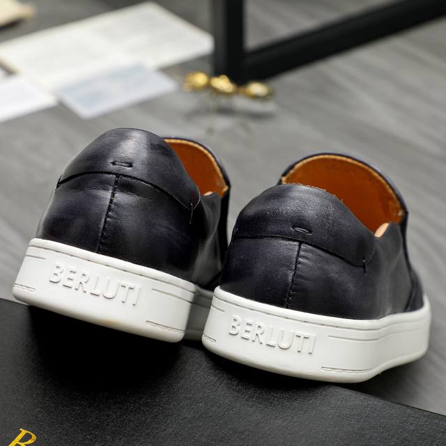 商品商标:Berluti 伯鲁提 休闲套脚鞋 正码码数: 38-45 45.定做不退换 商品材料:精选优质牛皮鞋面 猪皮内里 原版大底