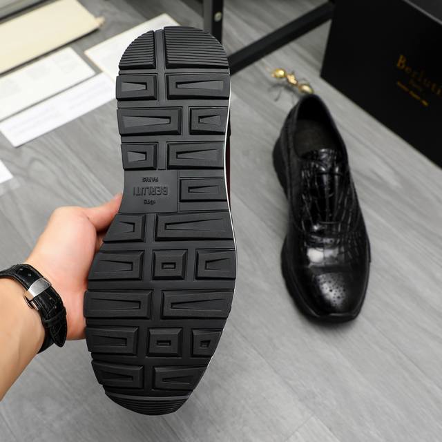 商品商标:Berluti 伯鲁提 商务正装皮鞋 正码码数: 39-45 45定做不退换 商品材料:精选石头纹牛皮鞋面 牛皮内里 原版防滑大底