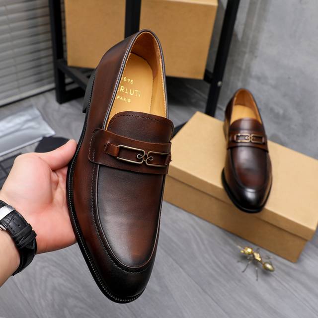 商品商标:Berluti 伯鲁提 正装皮鞋 正码码数: 38-44 45订做不退换 商品材料:精选 擦色牛皮鞋面 牛皮内里 原版大底