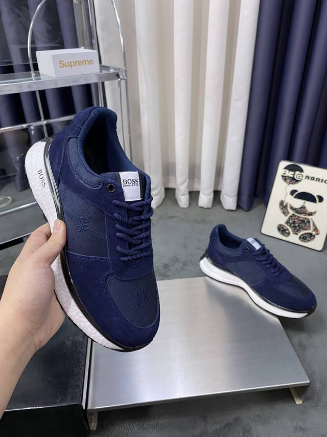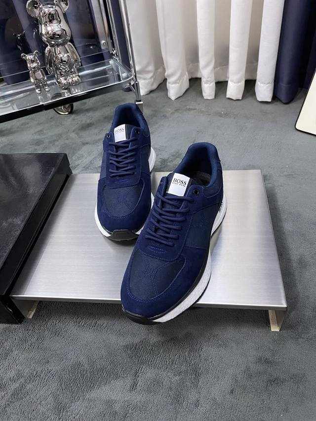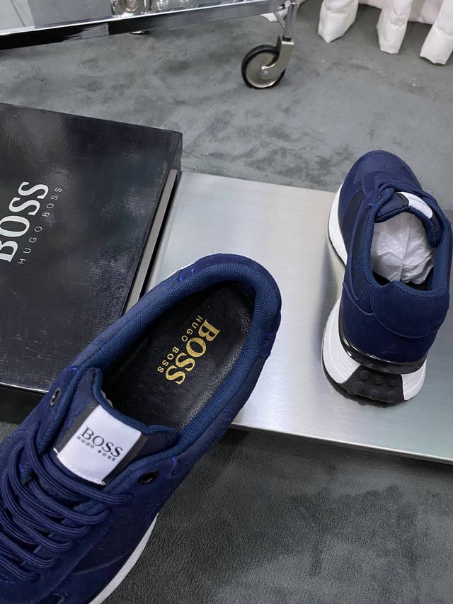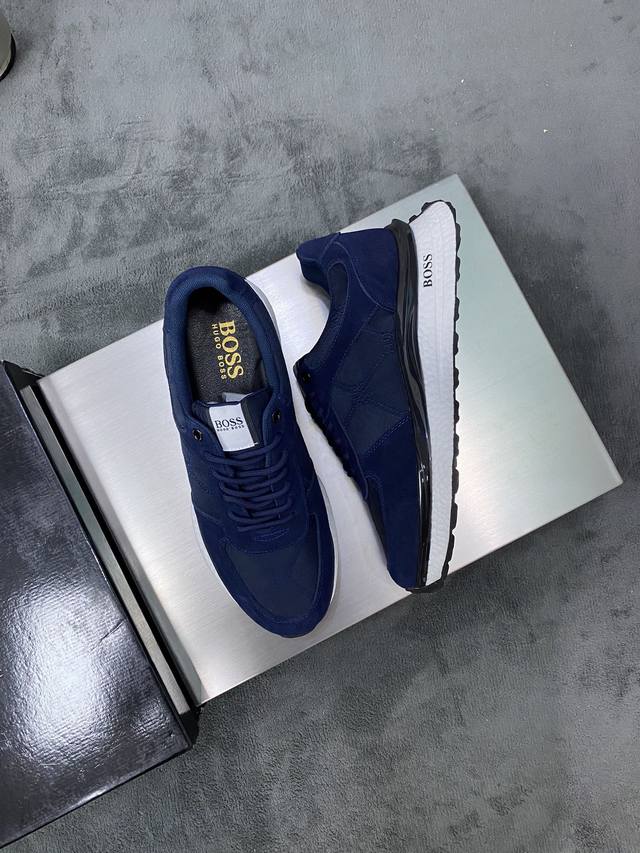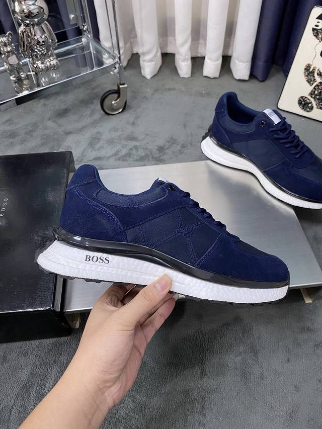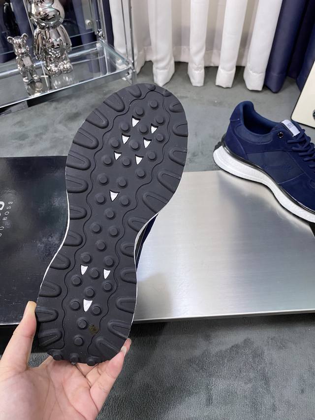 商品材料:Boss全新设计完美做工打造装柜品质,鞋面多种材质拼接,网布内里柔软舒适,橡胶大底超轻 耐磨、简约、百搭风时装男鞋。