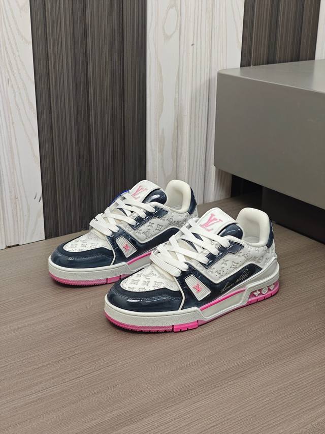 / 奢品trainer男士休闲运动鞋 ,运动鞋记录设计师 Virgil Abloh 由复古篮球鞋激发的经典创意,此次拼接光滑牛皮革和 Monogram 压纹粒面牛皮