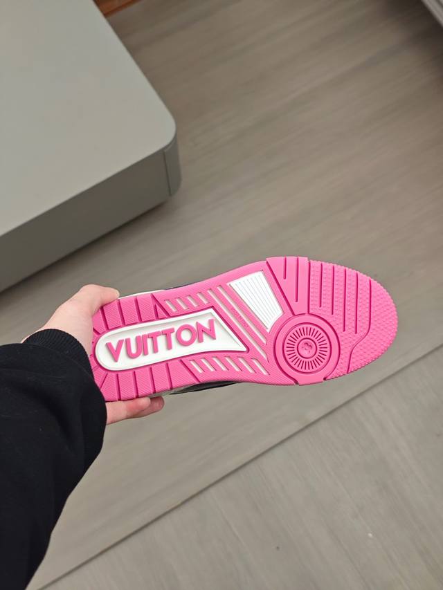 奢品trainer男士休闲运动鞋 ,运动鞋记录设计师 Virgil Abloh 由复古篮球鞋激发的经典创意,此次拼接光滑牛皮革和 Monogram 压纹粒面牛皮