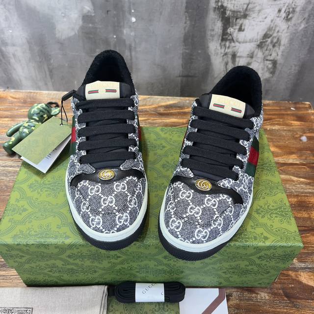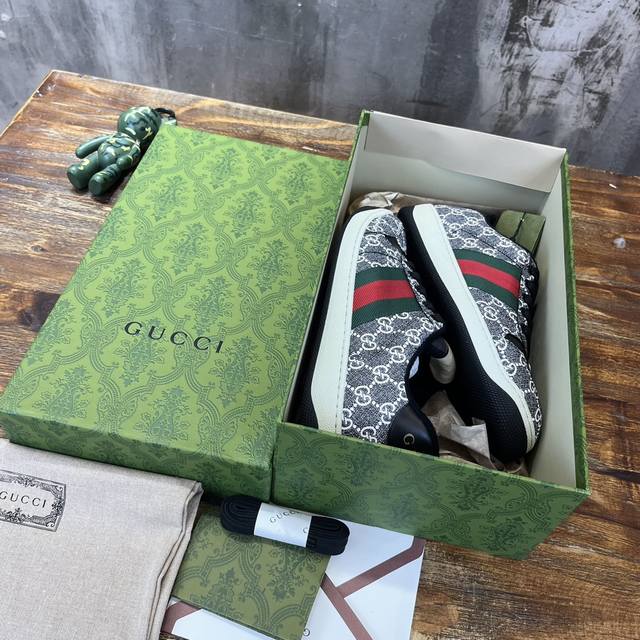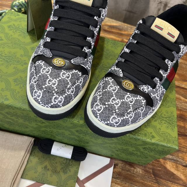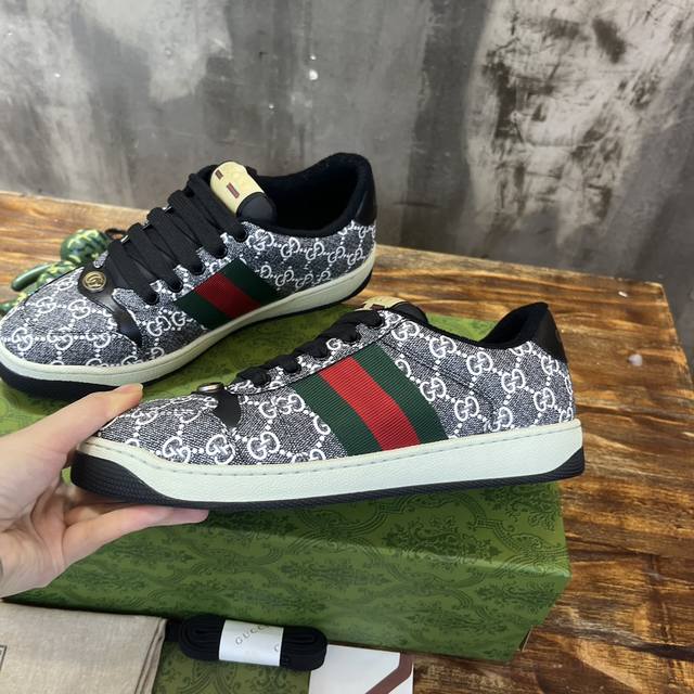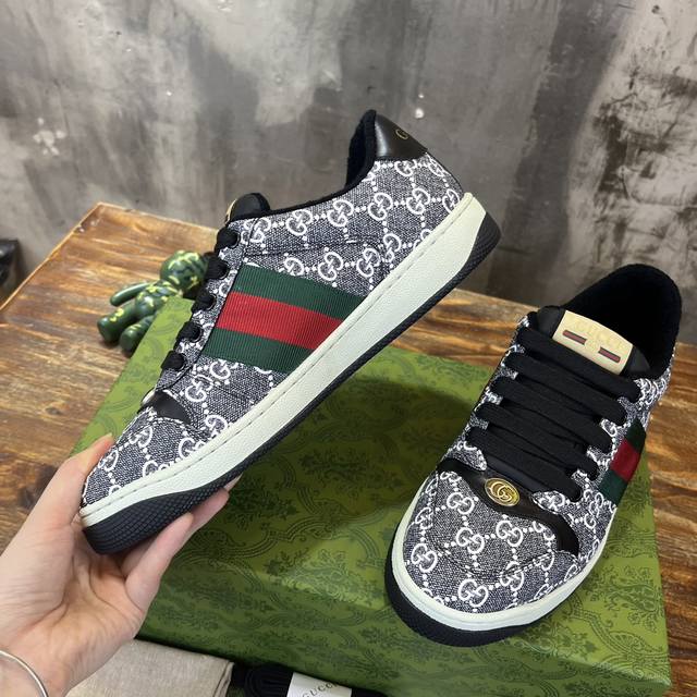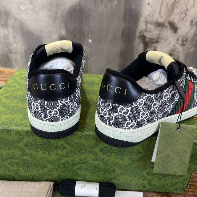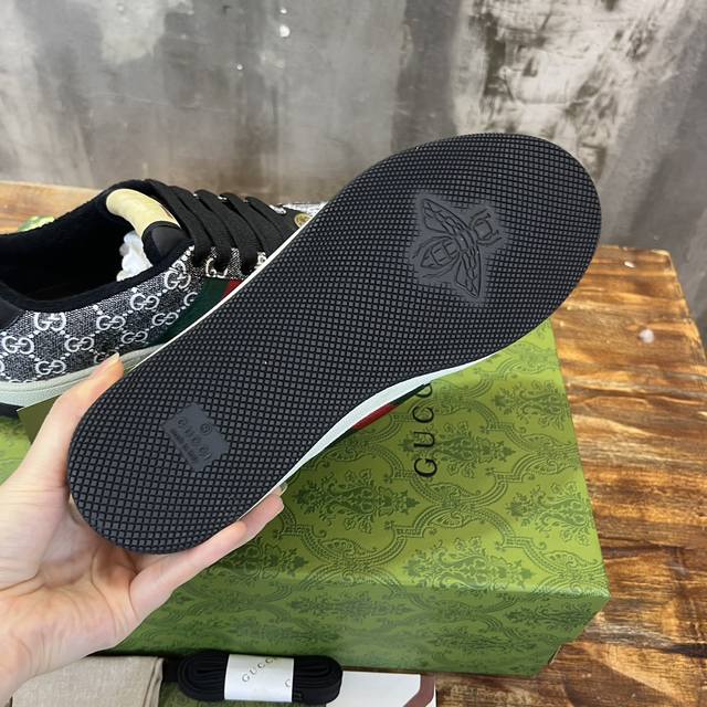 真正原版1比1开发版本,原版开模金属钻链,加采用金属双g水晶圆柱形标,选用对比无数材料最接近的条纹织带,独家擦色牛皮面料,搭配1比1毛巾布里,私模钢印双色原版tpu大底 下层宽,上层窄 。
