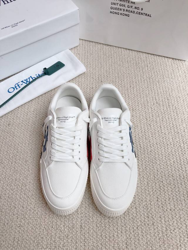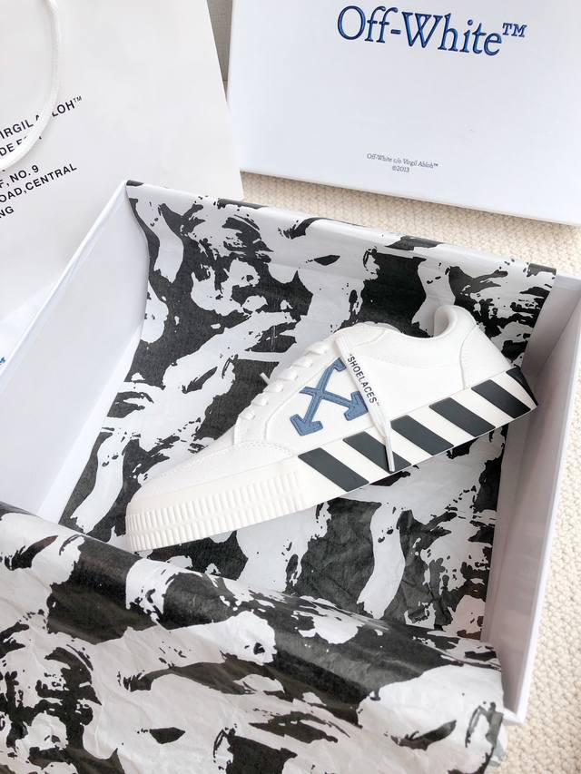 潮牌箭头斑马线大底,官网同步现货供应OFF WHITE经典十字标撞色标志潮范十足,是经典板鞋时尚百搭必选款喔
