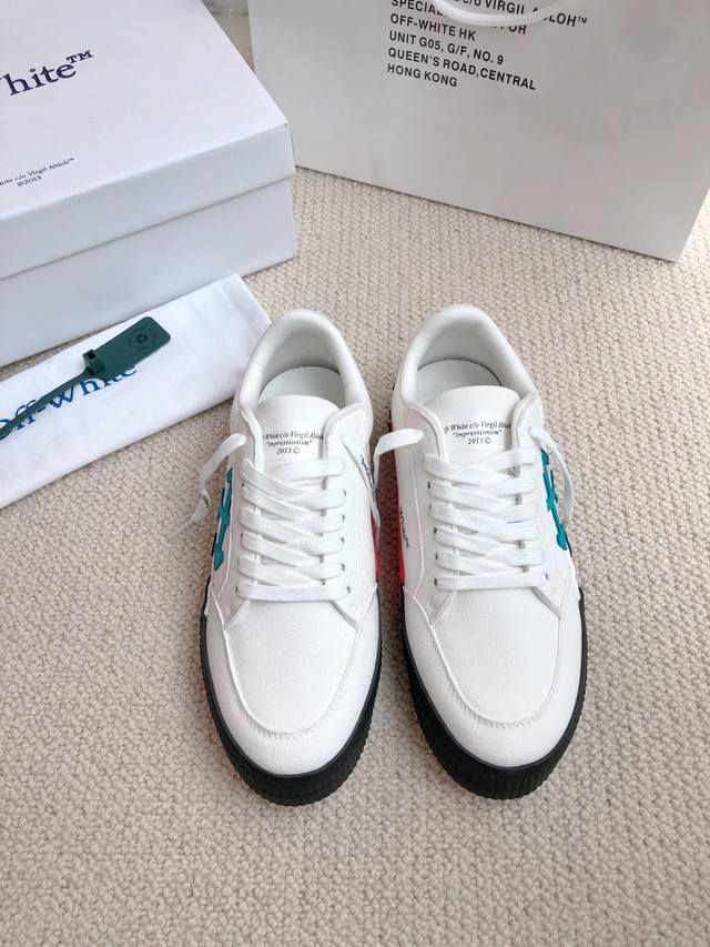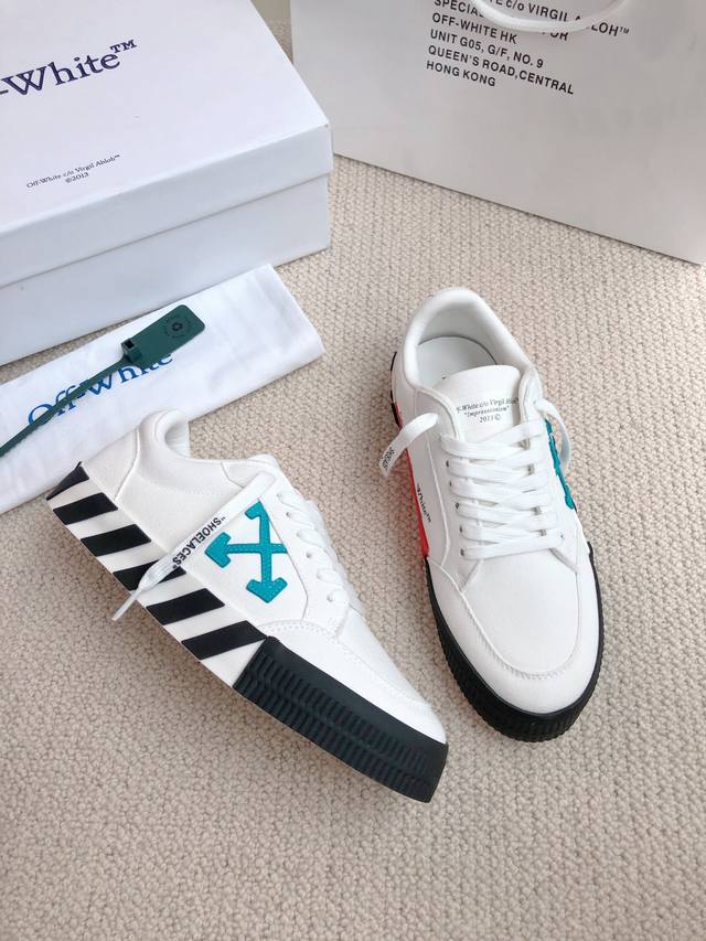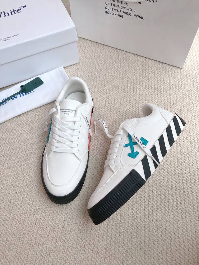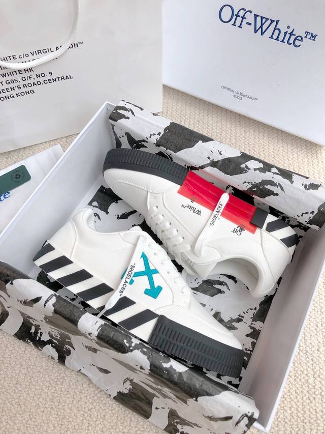 潮牌箭头斑马线大底,官网同步现货供应OFF WHITE经典十字标撞色标志潮范十足,是经典板鞋时尚百搭必选款喔