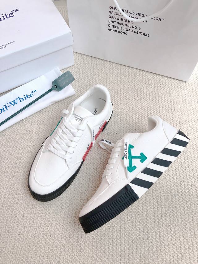 潮牌箭头斑马线大底,官网同步现货供应OFF WHITE经典十字标撞色标志潮范十足,是经典板鞋时尚百搭必选款喔