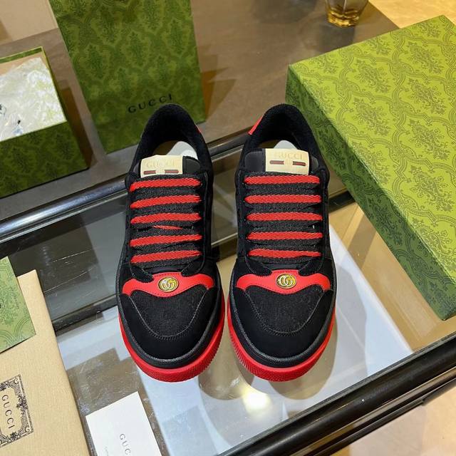 实价 顶级版本原版购入开发做货,品质100 99.99免检.淡季跑量价 这款运动鞋采用GG帆布材质。紫色皮革细节以鲜明对比为单品增加深度,细节更显丰满 ! 面料:原版进口牛皮+双G面料 内里:原版定制透气毛巾绒里 鞋底:原版开模TPU大底 底厚:约6cm 码数:女35-40男39-45。