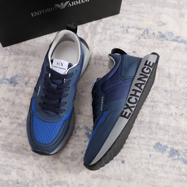 / 实价 [ARMANI EXCHANGE] AX 新款 原版1:1设计 ,高端精品细节考究鞋面采用进口多种材料拼接,运动内里,原版PU与橡胶组合大底。时尚休闲,值