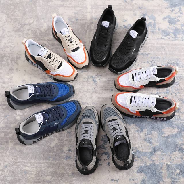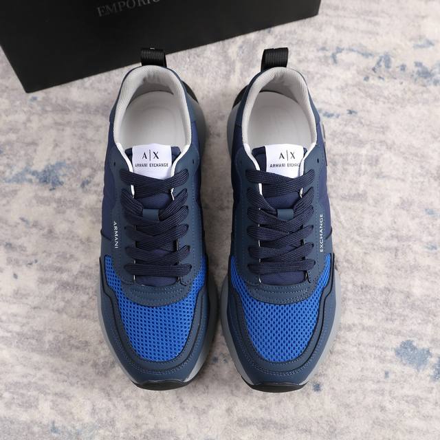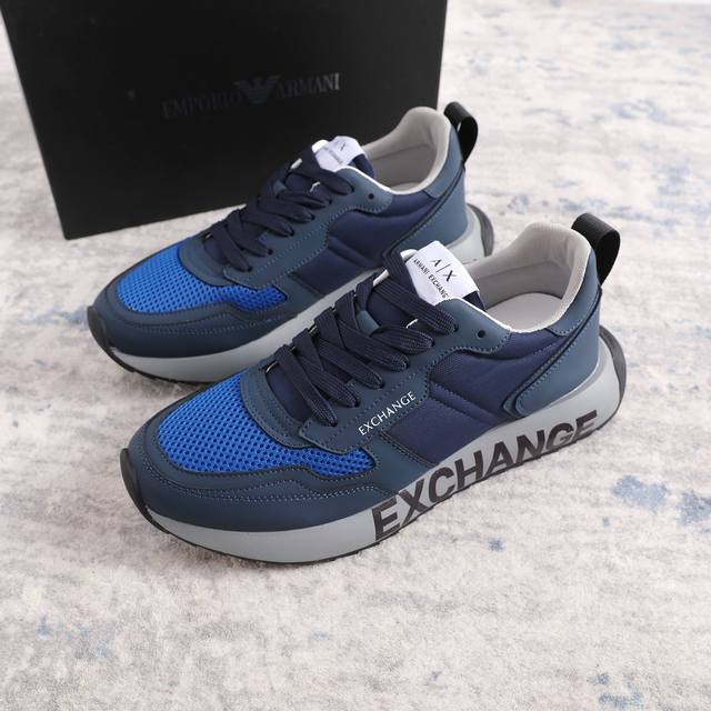 实价 [ARMANI EXCHANGE] AX 新款 原版1:1设计 ,高端精品细节考究鞋面采用进口多种材料拼接,运动内里,原版PU与橡胶组合大底。时尚休闲,值得拥有,4色可选!码数:38-44