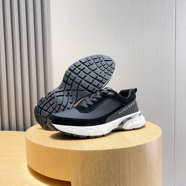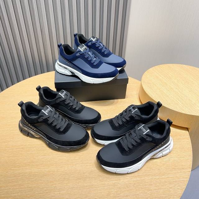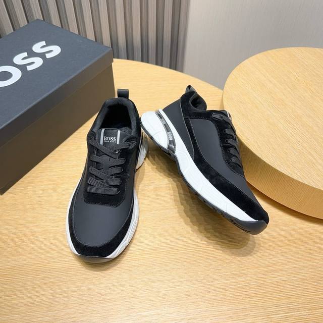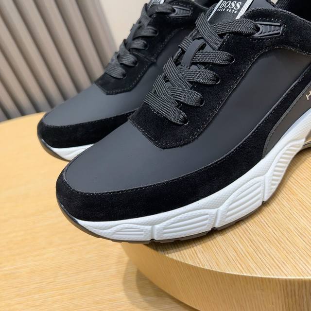 / 实价 Boss 新款男仕运动鞋 知名运动品牌新款隆重上市 以奢华高端设计出货,鞋面采用原版皮革制作 羊皮垫脚 叠层设计鞋面线条感层次分明,轻质橡胶大底。轻奢风格