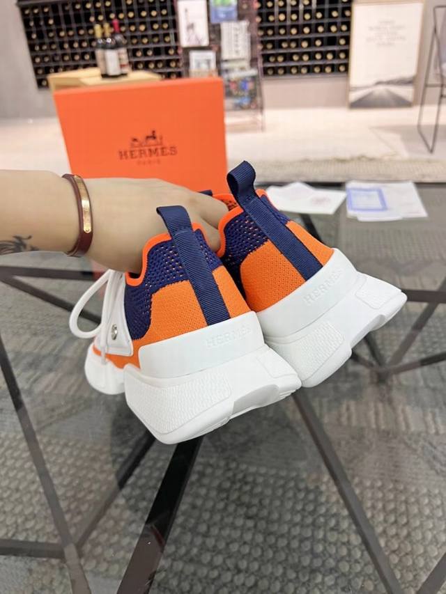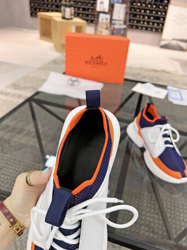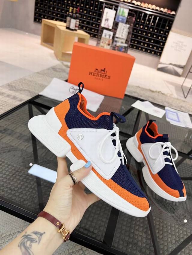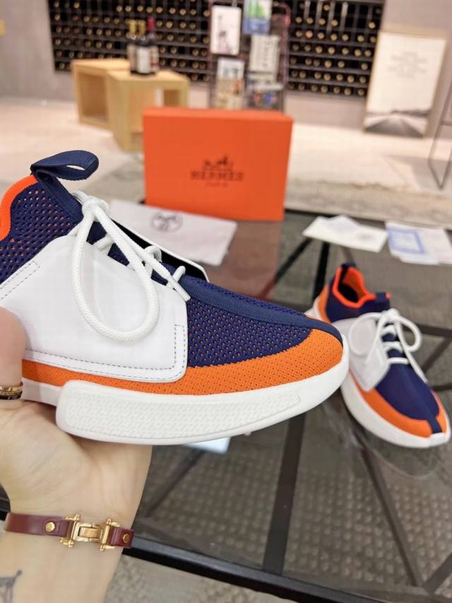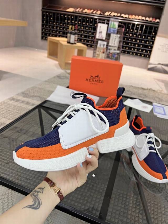/ 实价 Hermè*官方最新高端男士运动休闲鞋,进口原版飞织透气棉面料,脚感舒适,立体感十足 有眼前一亮的感觉 内里鞋垫均进口小牛皮,脚感柔软舒适 Tpu大底 中
