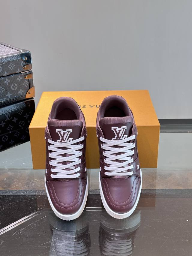 实价 L 奢品Trainer男士休闲运动鞋 ,运动鞋记录设计师 Virgil Abloh 由复古篮球鞋激发的经典创意,此次拼接光滑牛皮革和 Monogram 牛皮革,再以 Monogram 花卉点缀橡胶外底,映现一体色彩中的醒目跳跃。科技橡胶外底配有创新凝胶内垫,舒适感更为出众,经典的篮球鞋款,回头率杠杠的,搭配轻易,上脚透气舒适!Size:38-45。。。