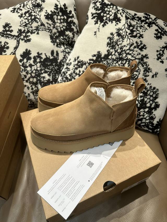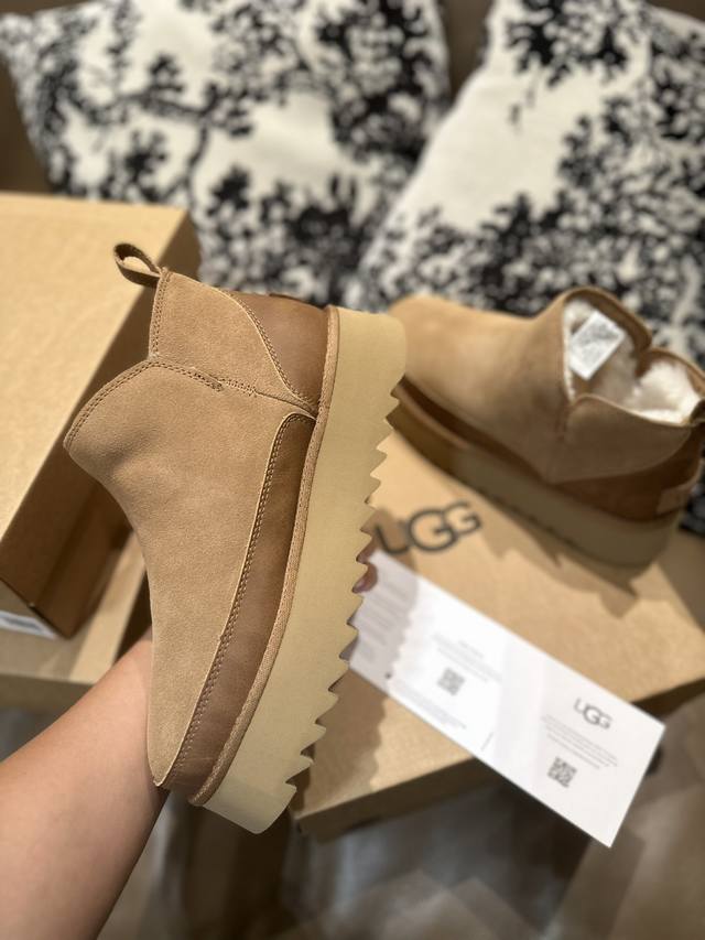 Ugg 短靴高版本,头层牛皮拼接羊皮毛一体