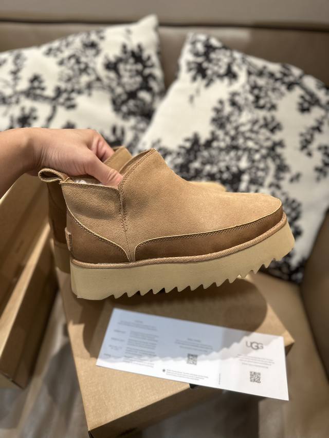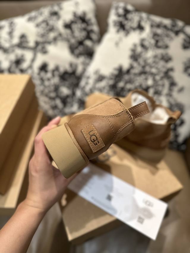 实价 Ugg 短靴高版本,头层牛皮拼接羊皮毛一体 全羊毛雪地靴 原版拆解11 代购级 面料 原板材料 内里羊毛 女35-40 男41-45码 男码定制不退换