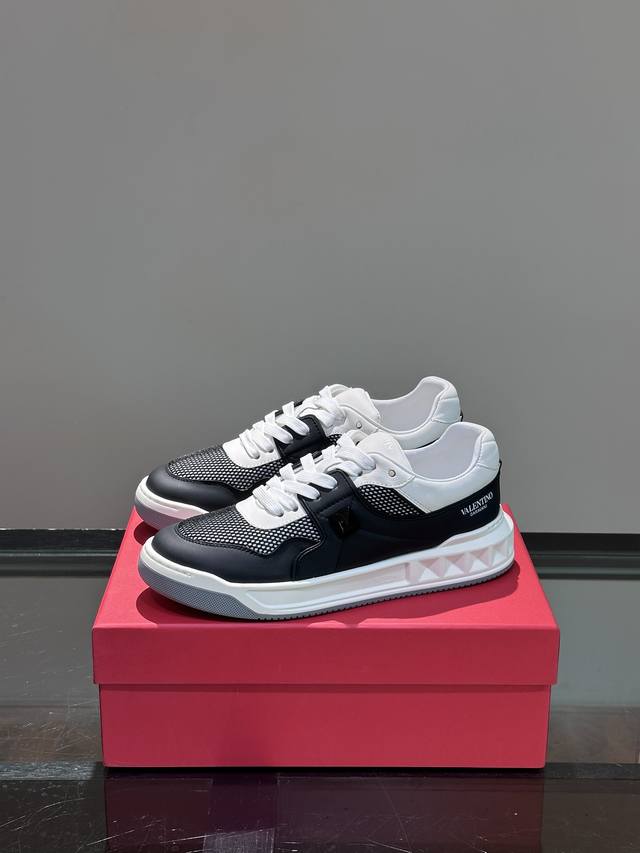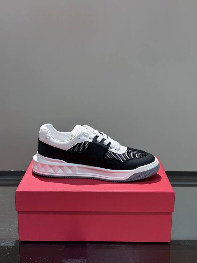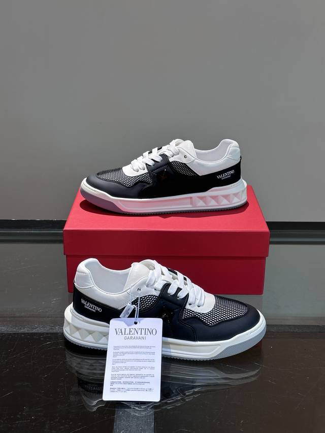 实价 Valentin* 华伦天 *one stud系列男士厚底增高运动鞋,简约明快构造清爽新潮穿搭!衍缝格纹与超大铆钉,打造瞩目朋克风格,考究皮质构塑和简洁轮廓,流畅的线条奠定酷感基调,是最经典的百搭单品!厚底增高5CM,气场拉满。