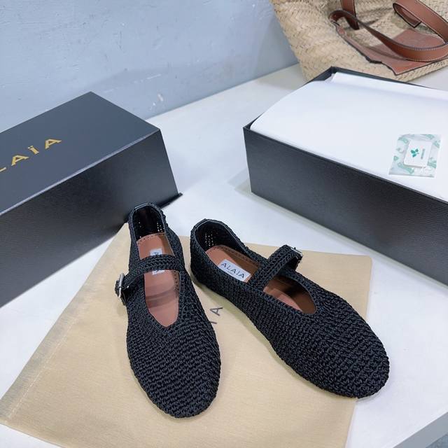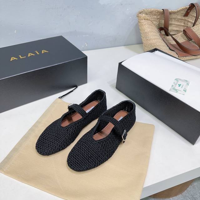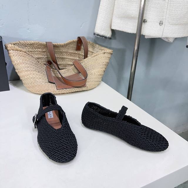 小众潮牌alaia阿莱亚25春夏新品毛线针织编织镂空复古扣带玛丽珍鞋芭蕾舞平底鞋!章小蕙同款甜酷芭蕾风,人气超高的一款芭蕾舞鞋,浪漫又迷人舒适百搭满满的少女风 既摩登又复古的味道 非常的简约大气 不管是半身裙 连衣裙还是牛仔裤 它都能成为点睛之笔!
