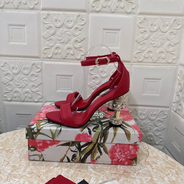 工厂价 女装女鞋 运动原单 DG.顶级版本.高品质2025新款 1:1开模 DG钻跟凉鞋鞋面:牛皮内里:羊皮 跟高: 10.5cm大底:A级原版杏色真皮大底 码