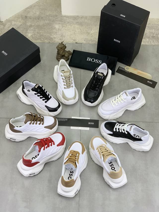 / 工厂价 实价 高版本boss 最新上市、进口原版牛皮面、高级原版图案 高端1:1开模定制,原版镂空发泡大底,更轻便,防滑 时尚主打潮流,百搭爆款 散发时尚休闲气
