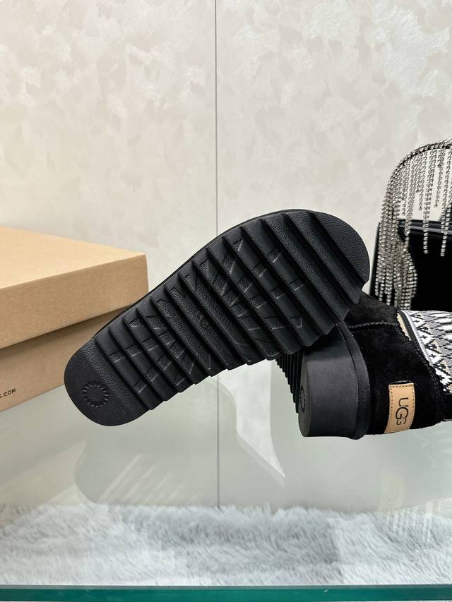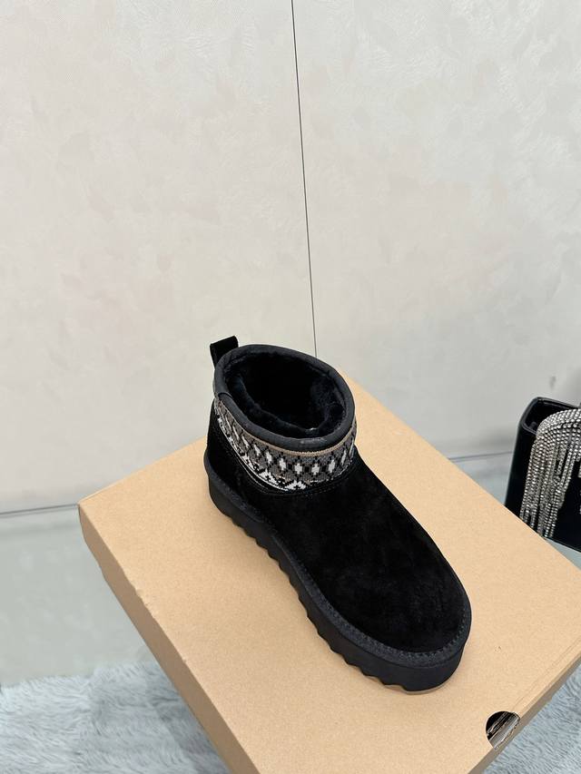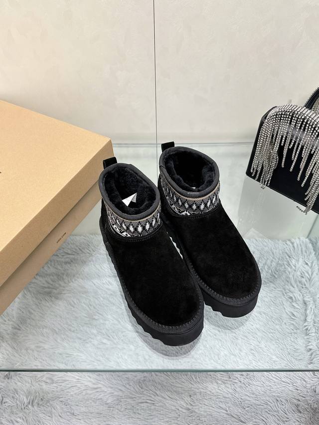 / 工厂价: 百分百羊毛 皮毛一体 UGG民族风厚底一脚蹬雪地靴 异域风情~民族风的设计,让人眼前一亮,绝对值得入手的一件哟~大底厚4cm 大底:EVA发泡加厚轻盈