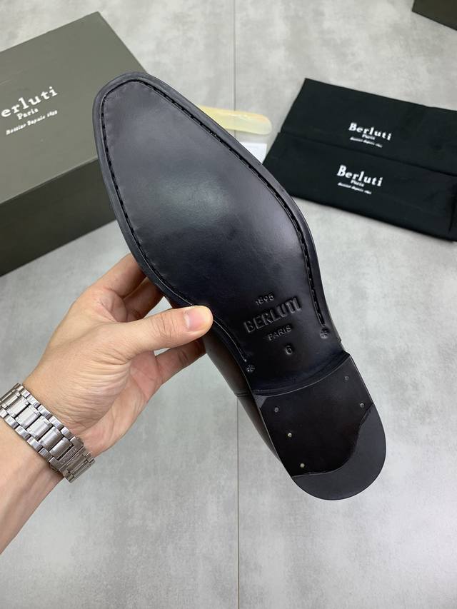 工厂价 真皮大底 Berluti 布鲁提 2024新款来袭 进口牛皮材质纯手工重复擦色改色制成 内里垫脚进口精选小牛皮制作 品牌logo双色 真皮 大底 鞋底鲜明的嵌线与鞋跟颜色相呼应 时髦又舒适 完美诠释了时尚 阳光 有型 适合各种场合 全原包装 自留佳品.