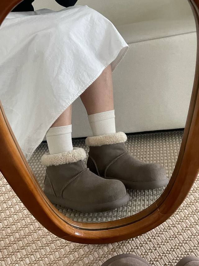 / 工厂价: 穆勒拖 小土豆升级版 卷毛土豆靴 秋冬厚松糕底短筒雪地靴棉鞋 靴筒位置真的重要决定了靴子原版购入 面料:进口磨砂牛皮 内里:进口羊毛 鞋底:原版开模