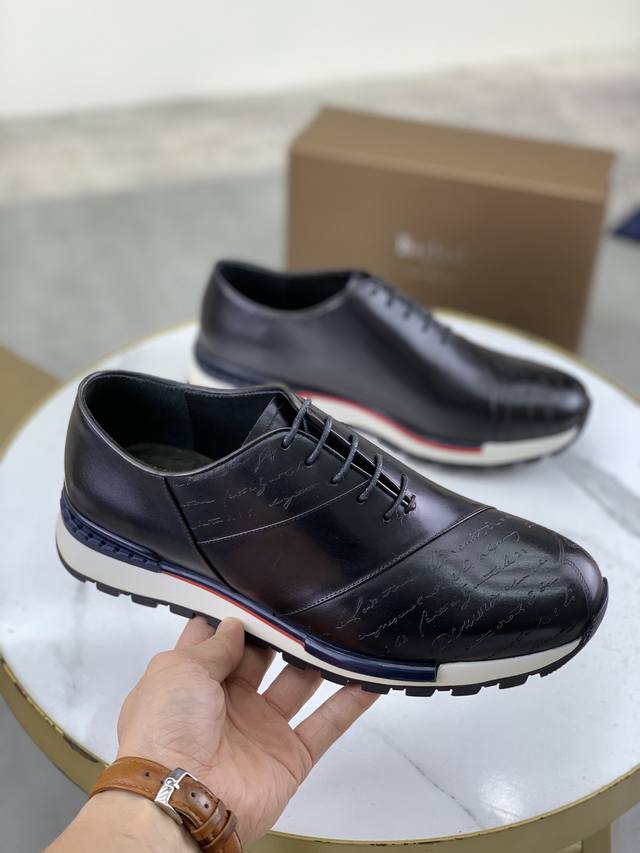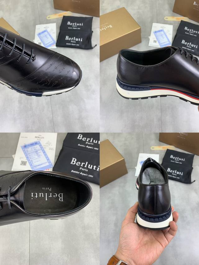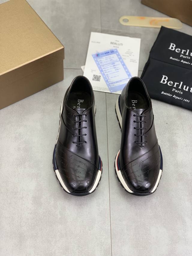 工厂价 顶级代购品质berlut*布鲁提法国顶级男鞋,Berluti品牌的首秀中打破常规,推出全新的edge鞋楦 这款更是在擦色牛皮上加入手精致时髦,水染牛皮内里,原版拼色轻便耐磨橡胶底;标志性鞋楦的这种大胆改良,对于其独特形状和边宽创意工作意义重大 在alessandro鞋履上,这种棱角分明的轮廓经kris大胆专业的全新cloudy 染色显得更有透视感,经典时尚!Size:39-44 38 45码可订制