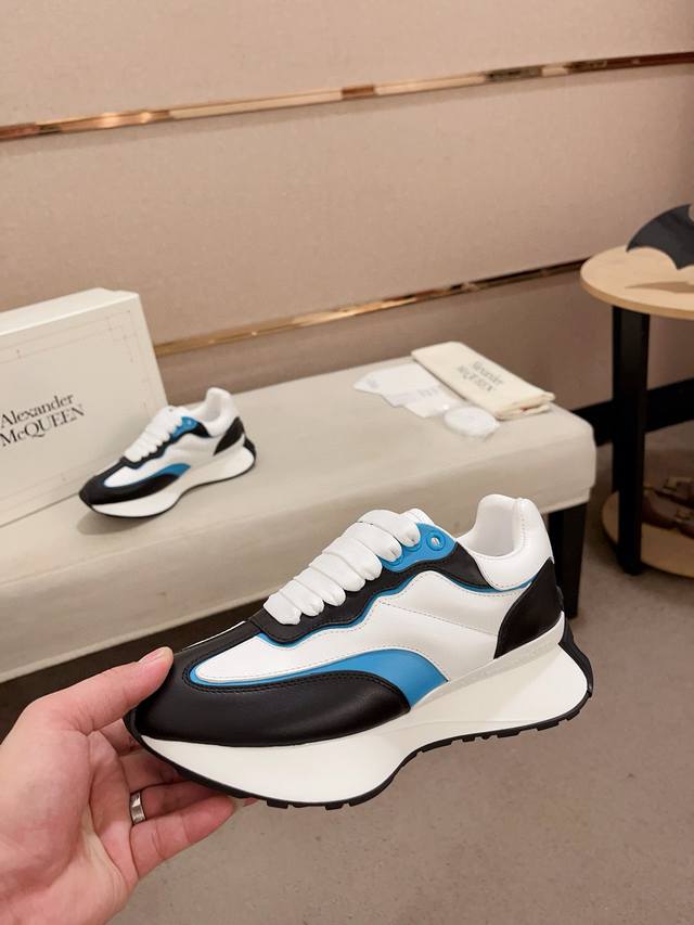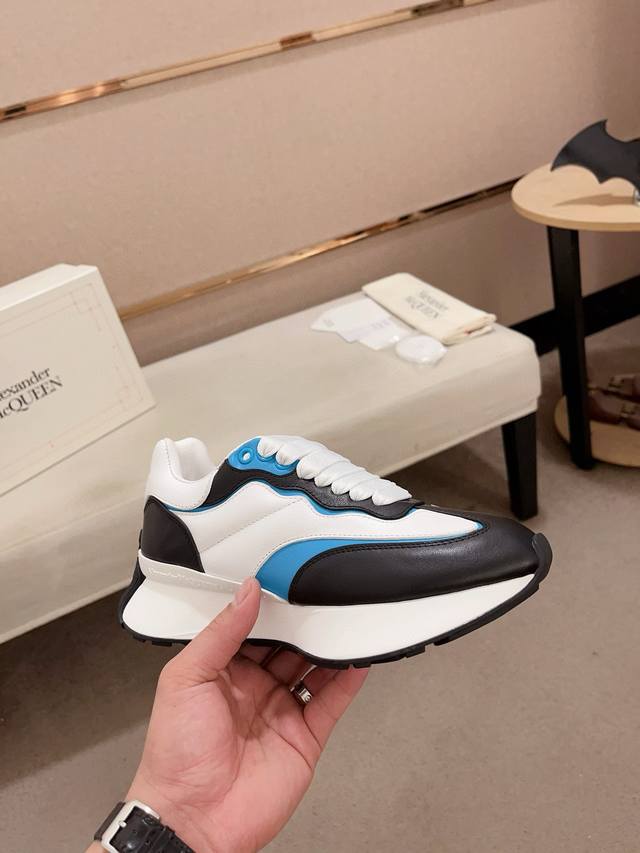 工厂价: 顶级版本 Alexander Mcqueen 亚历山大麦昆 2025春夏男sprint运动情侣款 鞋侧面饰有时尚个性字母seal Logo标志 全皮十