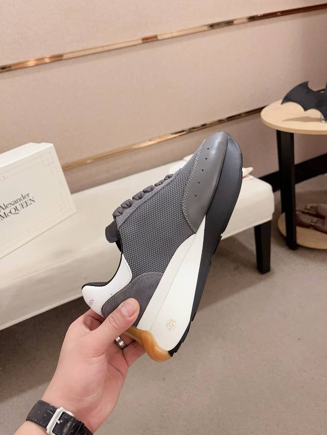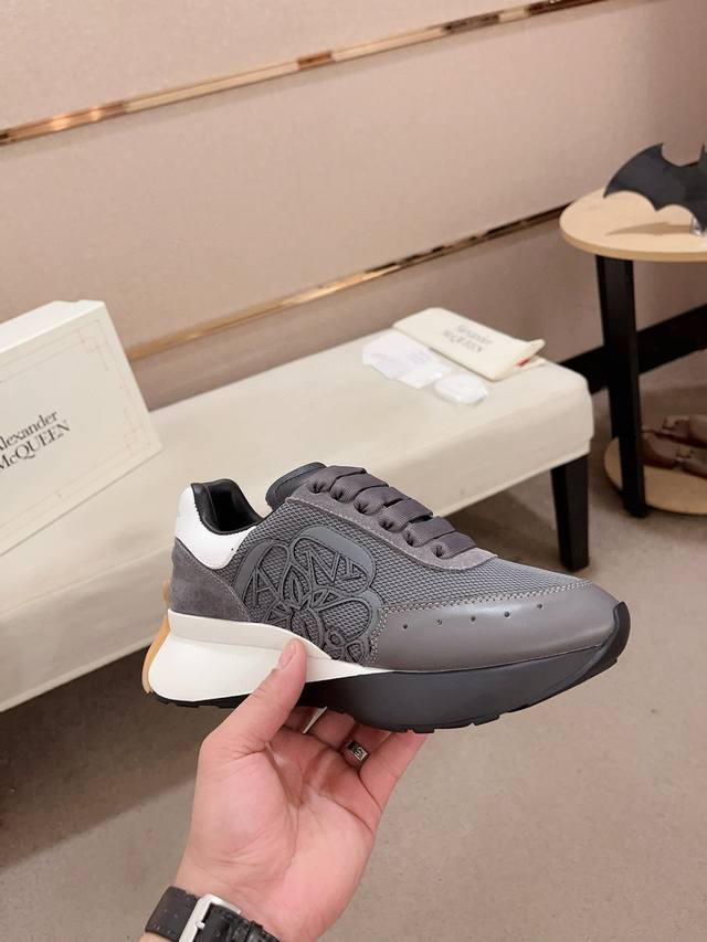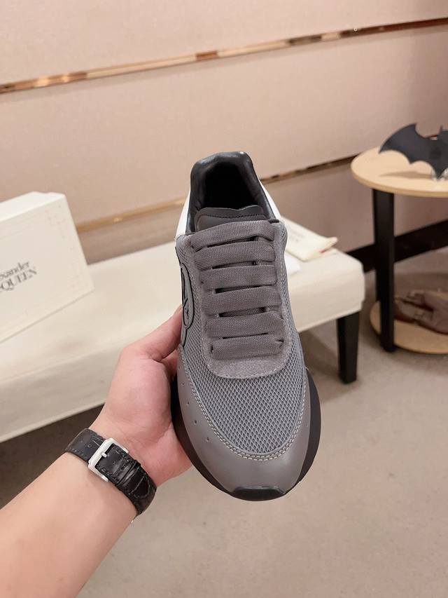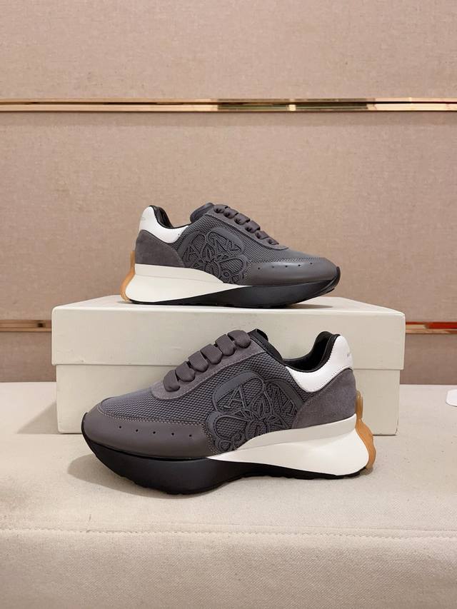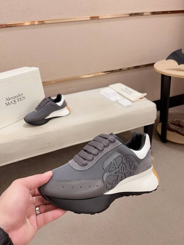 工厂价: 顶级版本 Alexander Mcqueen 亚历山大麦昆 2025春夏男sprint运动情侣款 鞋侧面饰有时尚个性字母seal Logo标志 全皮十网面工艺 高版本油边工艺 内里羊皮 牛皮垫脚,不脱层不褪色,最新精美全套包装 另配有一幅鞋带 女35-40男39-44 45定要做