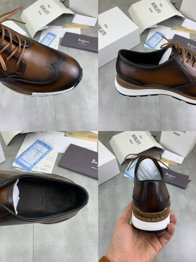 / 工厂价 顶级版本 Berluti布鲁提男士运动休闲鞋面料采用原版牛皮纯手工改色|强烈对比色调突出鞋面线条感|明镀钯孔眼|内部衬垫鞋跟|原版私模tpu橡胶大底 5