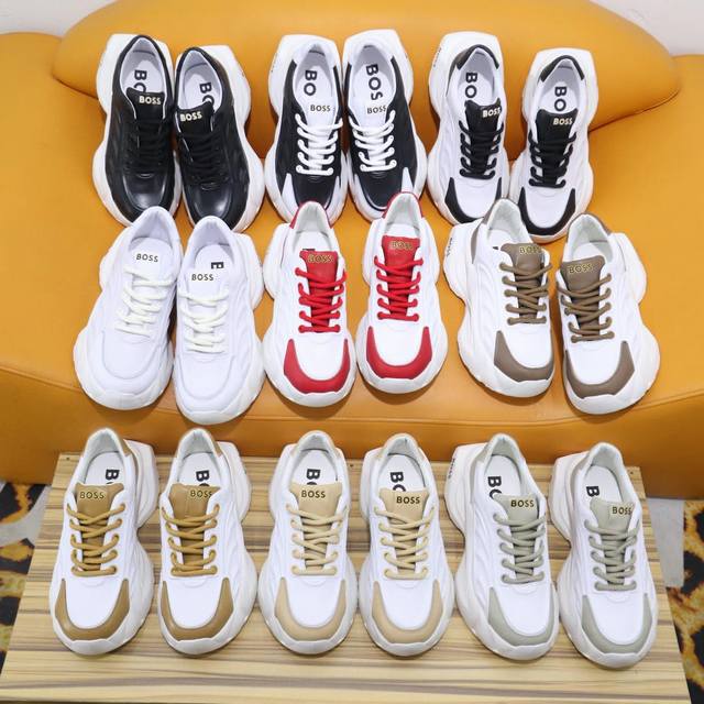 工厂价 高版本boss 最新上市、进口原版牛皮面、高级原版图案 高端1:1开模定制,原版镂空发泡大底,更轻便,防滑 时尚主打潮流,百搭爆款 散发时尚休闲气息,时尚就在脚下 码数:38-44 颜色:9色可选
