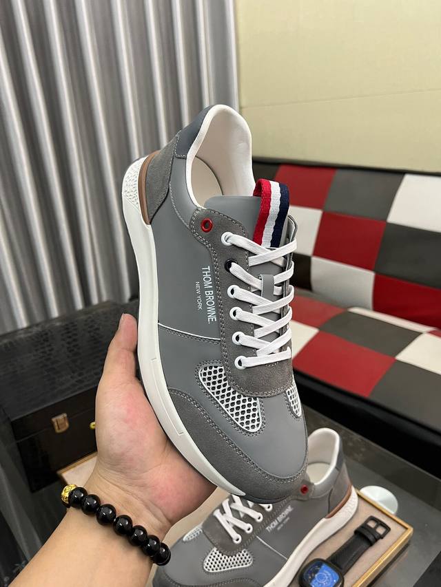 工厂价 高端版羊皮里 THOM BROWNE 汤姆 布朗 new york 汤姆再上爆款!这个邪魅酷感的新锐品牌 让我们在这个夏天有了放松 时髦 个性的新选择 TB白鞋风暴.鞋面采用原版进口反绒牛皮内里羊皮 鞋底采用原版鞋底制作 织带红白蓝3道杠杠点亮了品牌的元素 码数:38-44